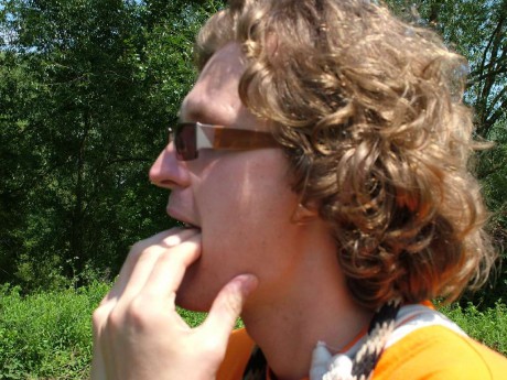 CHa cha, páníček se pokouší pískat na prsty a nejde mu to.